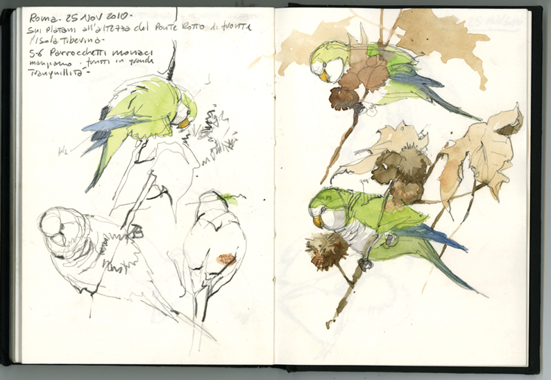 Il comprensorio dei Monti della Tolfa è un territorio caratterizzato dall'allevamento di bestiame allo stato brado soprattutto cavalli e vacche maremmane. I pascoli si alternano a boschi misti ed è un terrritorio ideale per osservare i rapaci. Nel disegno un ricovero per animali costruito con i materiali più disparati: pali di legno, lamiera, reti di varia natura il tutto assemblato in modo quasi casuale ma alla fine davvero funzionale.