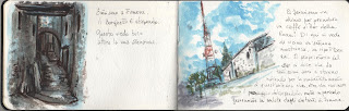 (Penna e pastelli acquarellabili su taccuino fatto a mano dagli studenti del Liceo Artistico di Porta Romana).