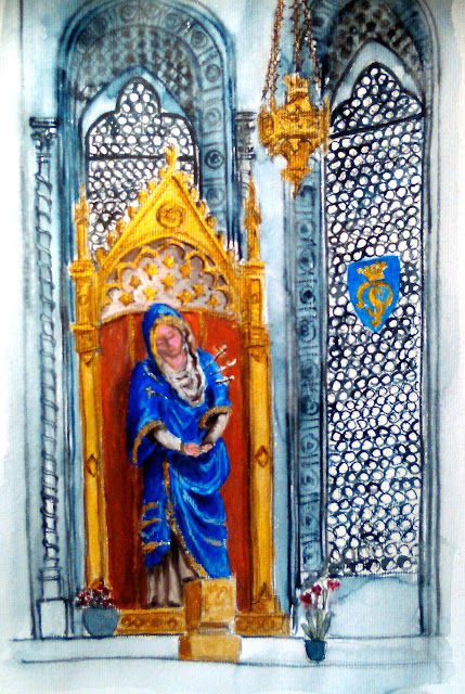Al fresco dentro del Duomo di Siena mentre tutto il mondo fa delle foto mi ho sentito fortunata di fare un disegno, ogni minuto vedendo un dettaglio di più. Mi piacciono le prospettive difficile e non è facile catturare il senso dello spazio di questo bellissimo edificio.