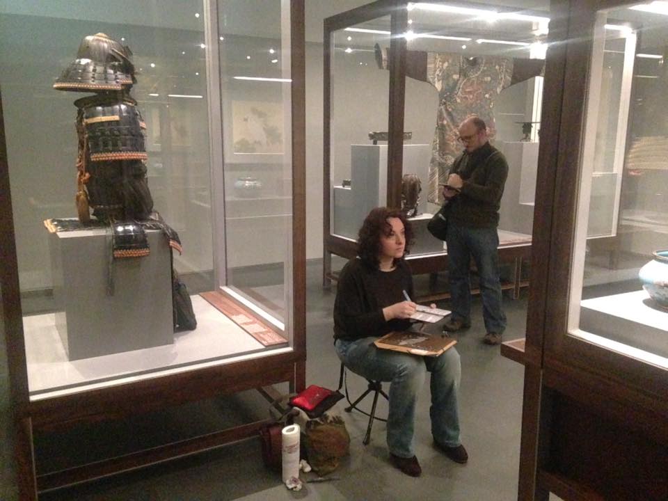 Nella tranquillità assoluta di un museo poco frequentato e quindi silenzioso (fatta eccezione per un piccolo gruppo di bambini della scuola materna con le loro maestre), abbiamo disegnato con piacere per tutta la mattina.